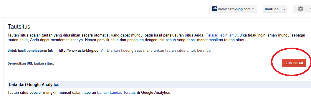 ini buat pengalaman saya ,yang selama ini saya menganggap demosi itu untuk melihat hasil silte link ternyata buka malah untuk menghapus sitelink yang tidak kita inginkan,jadi jangan sampai terjadi pada rekan rekan bloger,nantrinya akan menyesal,jadi gunakan tool ini hanya untuk url artikel yang tidak ingin tampil di sitelink